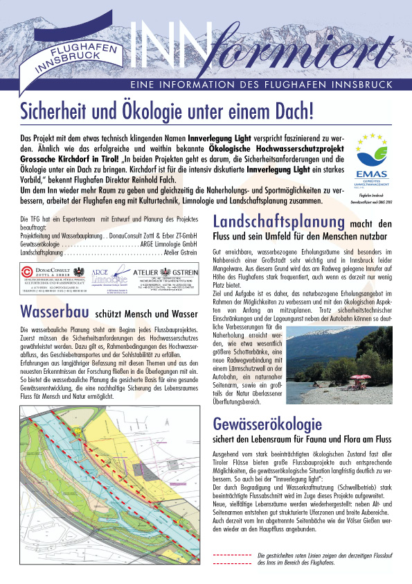 Das westliche Pistenvorfeld muss aus Sicherheitsgründen vergrößert werden. Dies kann nur mit einer Verschwenkung des Inn in diesem Bereich erreicht werden. In diesem Zuge sollen naturnahe Ufer und Bachmündungen und ein Inn-Seitenarm entstehen.